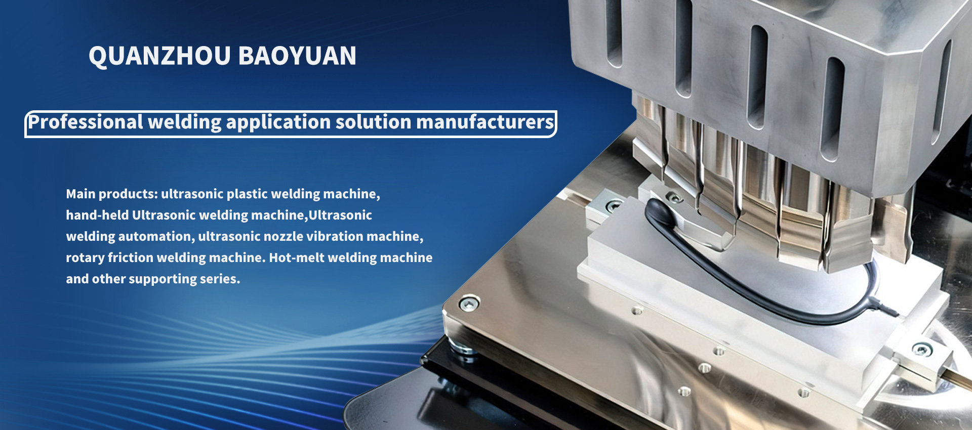 Quanzhou Baoyuan Smart Technology Co. , Ltd. is a subsidiary of Lingke Ultrasonic in Fujian Province. The company specializes in the production, development, sales and maintenance services of ultrasonic equipment. Its products include servo ultrasonic plastic welding machine, ultrasonic welding automation kit, rotary friction welding machine, hot-m…
